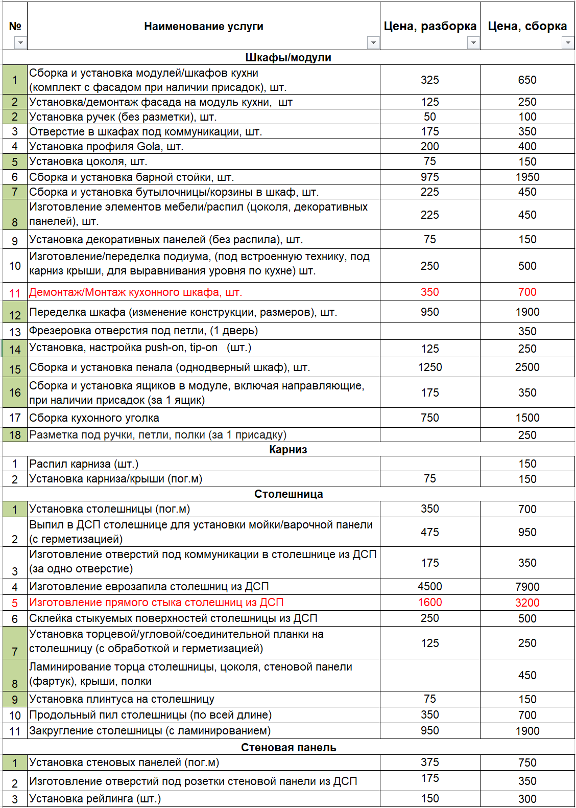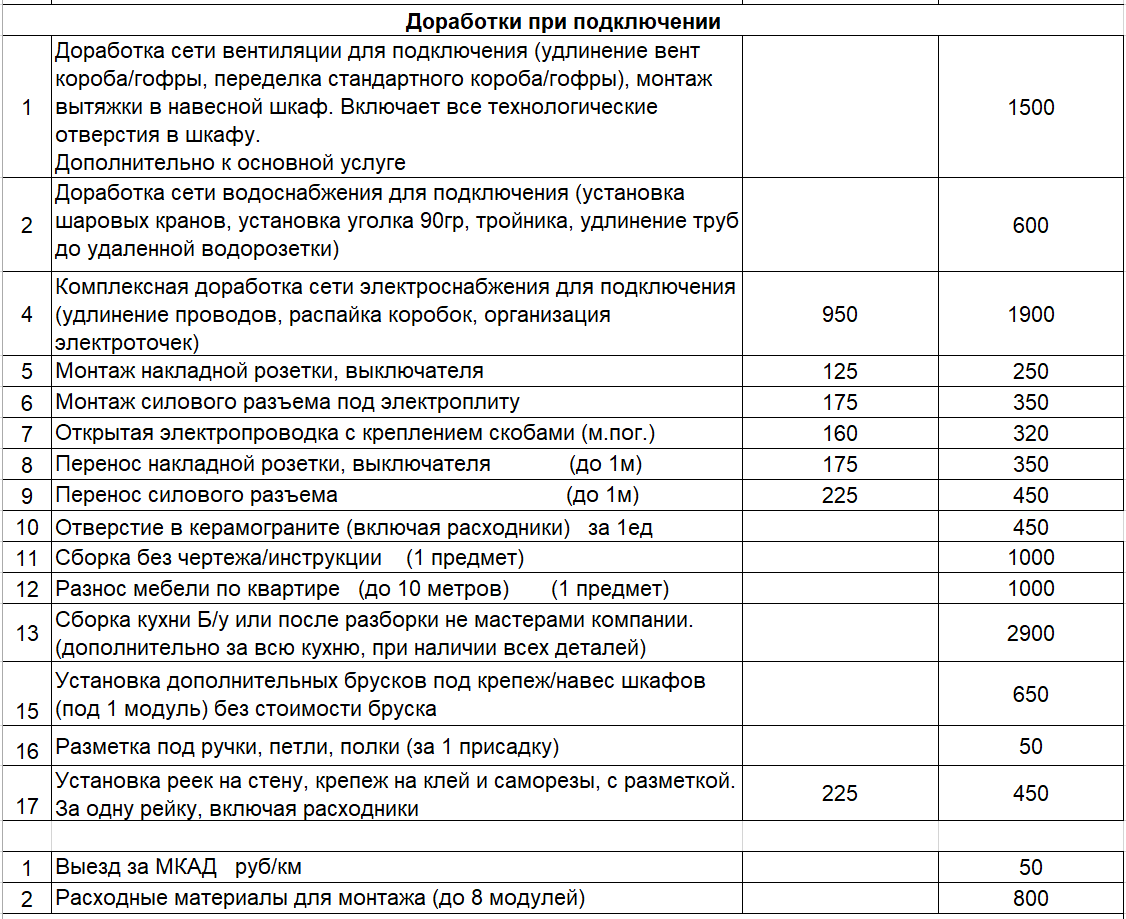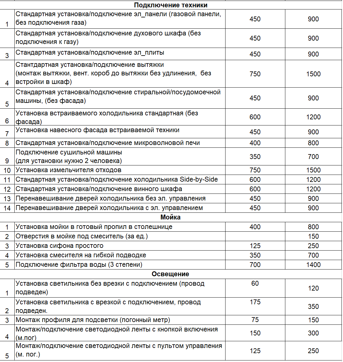 Внимание! В наш договор не входит стоимость подключения техники и выпилов в столешнице и стеновых панелях